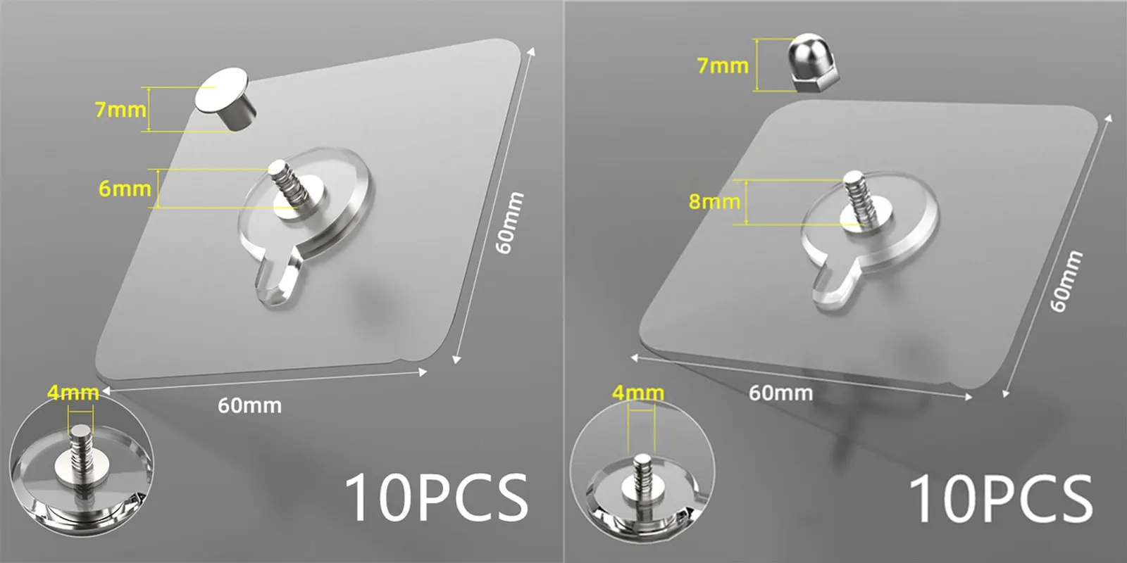 10PCS Transparent Stainless Steel Strong Self Adhesive Hooks Key Storage Hanger for Kitchen Bathroom